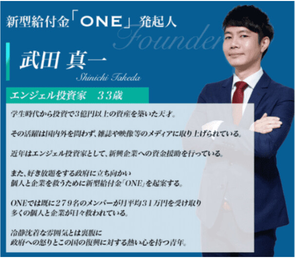 #武田真一の新型給付金ONEは副業詐欺?実態と武田真一の評判について